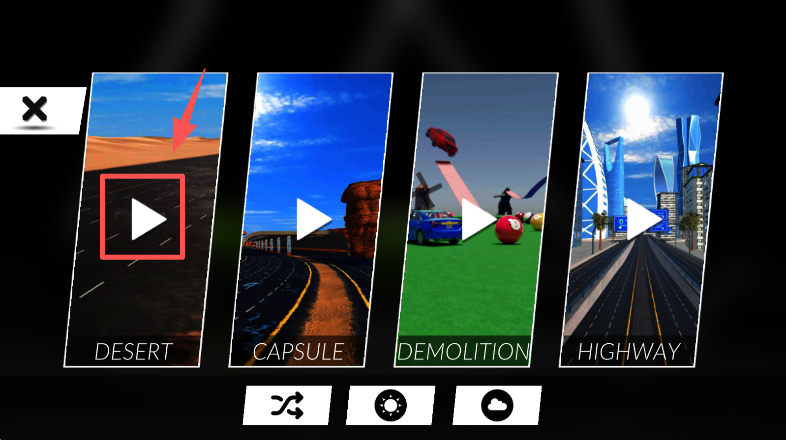 3、选择 “DESERT” 赛道对应的播放按钮,进入沙漠赛道场景。