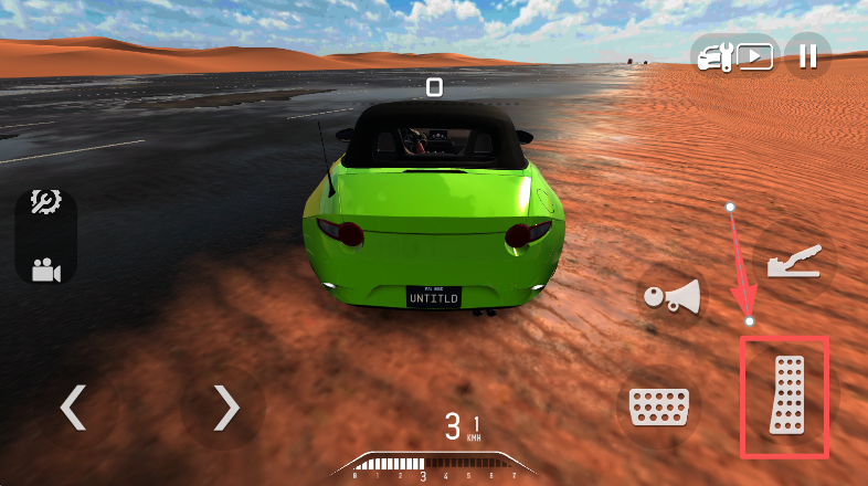 4、点击加速按钮控制车辆提速,在沙漠赛道中推进驾驶流程。
