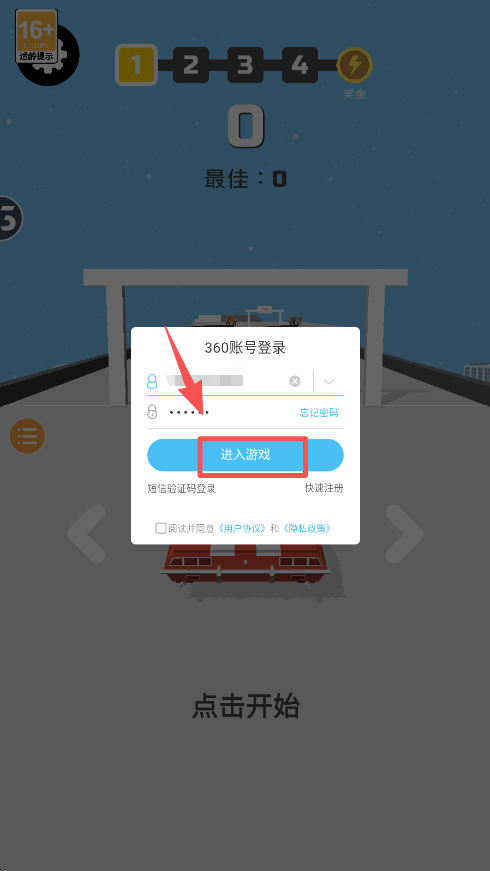 2、点击 “点击开始” 按钮,进入游戏的登录界面。