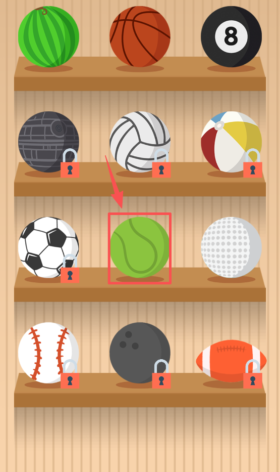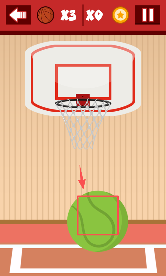 2、选择绿色网球,进入篮球投篮的游戏环节。
