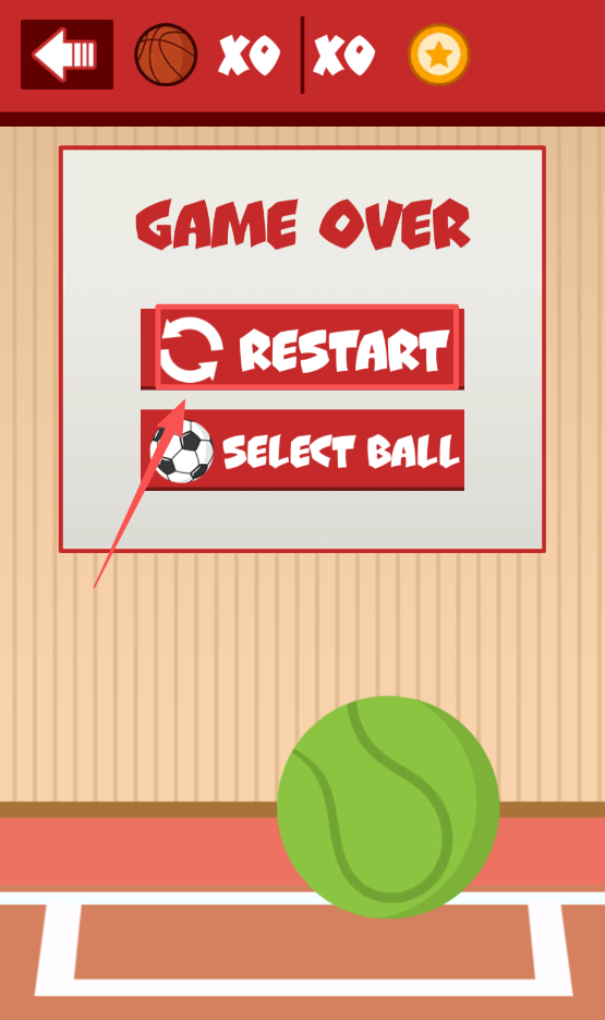 4、游戏结束后点击 “RESTART”,重新开始投篮挑战。