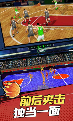 4、多人本地对战功能:支持与好友在同一设备上分屏竞技,选择不同球队进行即时对抗,共享紧张刺激的篮球时刻。