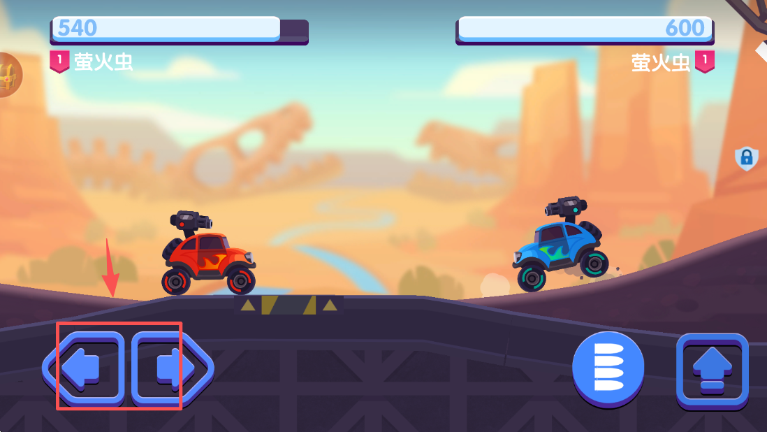 3、通过方向按钮操控红色战车移动,调整对战位置。