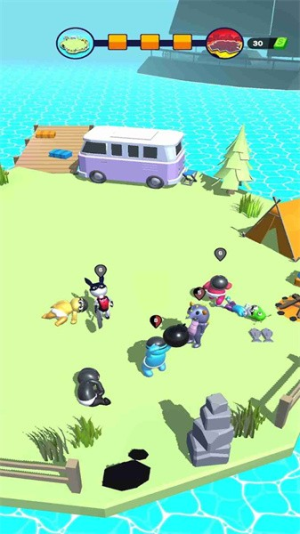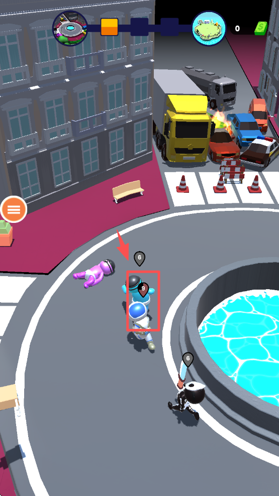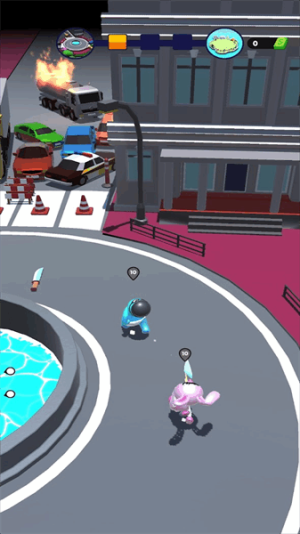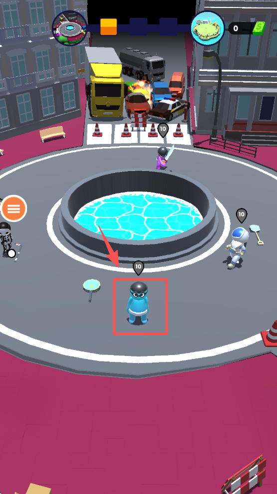 2、进入关卡后,操控蓝色角色在场地移动,注意躲避周围其他角色的攻击。