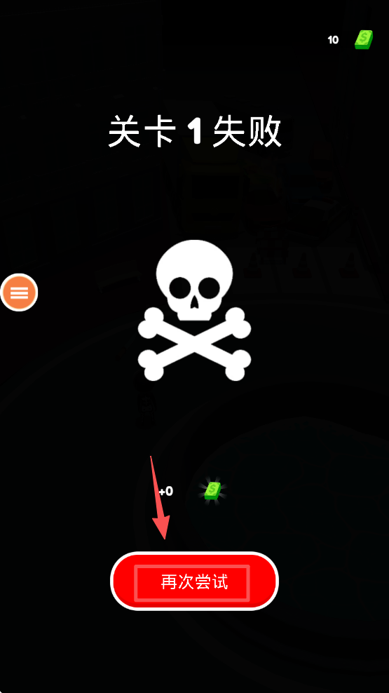 4、若关卡失败,点击界面中的 “再次尝试” 按钮,可重新进入关卡继续挑战。
