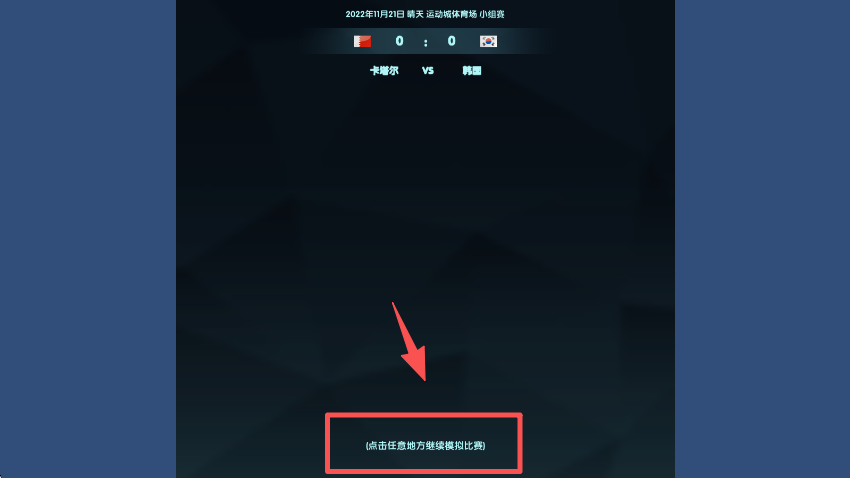 3、选好球队后,点击界面提示的任意地方,继续推进比赛模拟的流程。