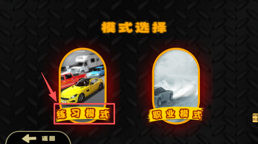 2、在模式选择界面,点击 “练习模式” 选项,进入赛车驾驶的游戏场景。