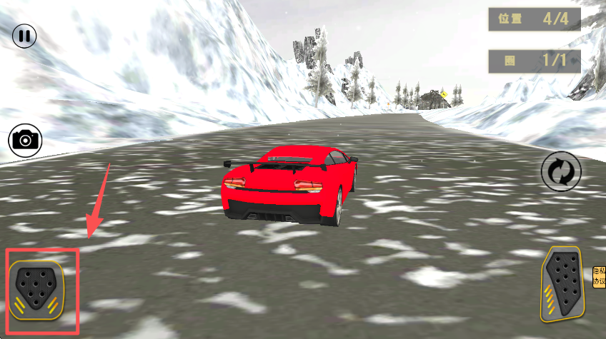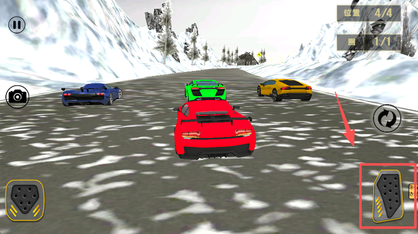 3、进入比赛后,点击右侧踏板按键控制车辆加速,参与赛车竞速。