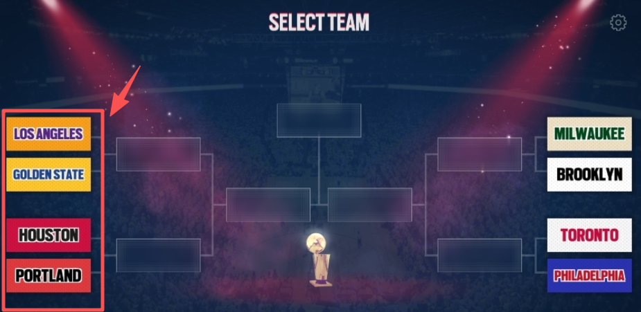 1、在选队界面,点击左侧列表中的球队,选定参赛队伍。