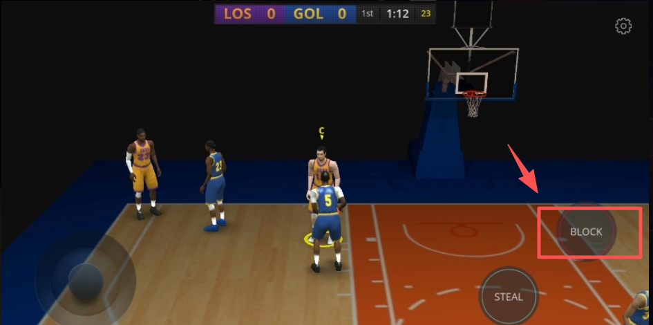 3、防守时,点击右侧 “BLOCK” 按钮,尝试阻挡对方球员的投篮或传球。