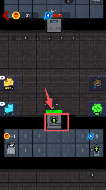 1、在对战场景中,点击带绿色箭头的装置,完成对应建筑的相关操作。