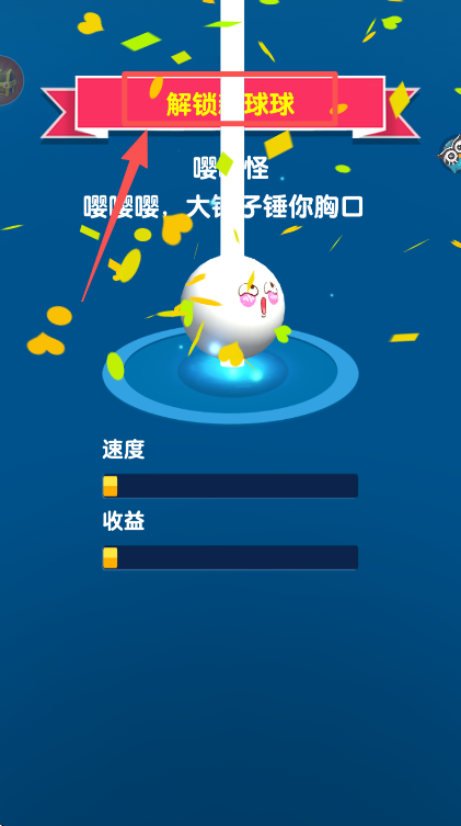 3、在解锁提示界面查看 “解锁球球” 的反馈,了解新球球的属性速度、收益信息。