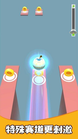 1、基础操控直观易上手:通过单指滑动控制球体左右移动,长按实现跳跃躲避低矮障碍,简单操作轻松入门。