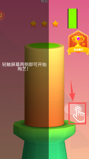 2、在教程界面轻触屏幕两侧,按照提示开始进行陶艺的塑造操作。