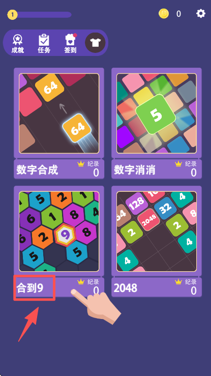 1、在游戏主界面找到 “合到 9” 选项,点击它进入对应的游戏关卡。