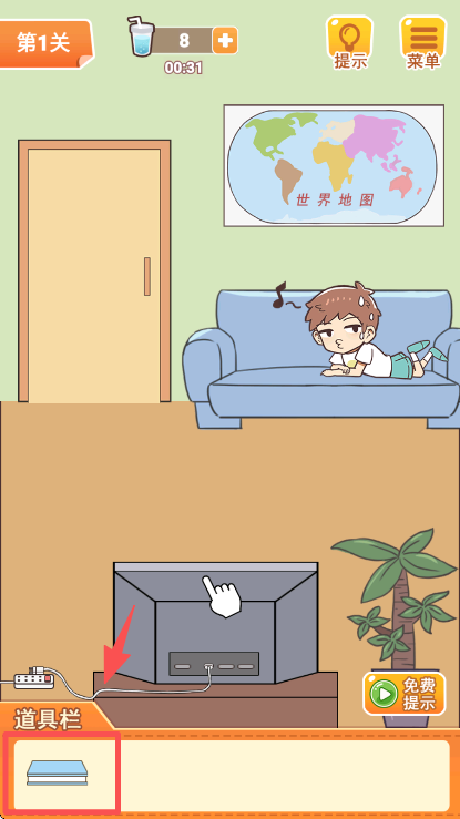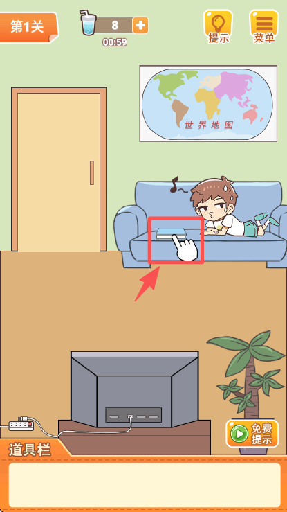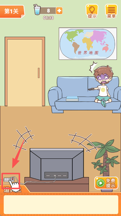 1、点击左下角道具栏里的遥控器,用它来调整电视状态,推进关卡进度。