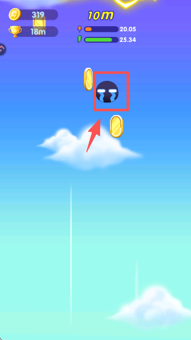 1、操控角色移动,触碰空中带哭脸的道具,触发对应的游戏效果。