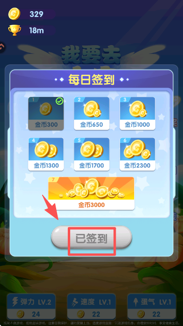 4、在每日签到界面,点击 “已签到” 按钮,领取对应的签到奖励金币。