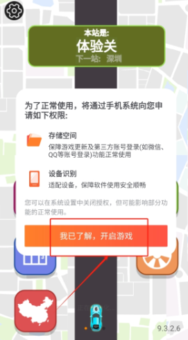 1、阅读权限说明后,点击 “我已了解,开启游戏” 按钮进入游戏。