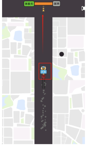 3、操控角色在道路上移动,沿着路线向目标方向前进。
