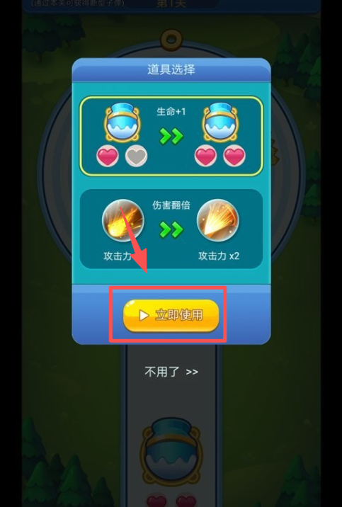 2、在道具选择弹窗里,点击 “立即使用” 按钮启用选定道具。