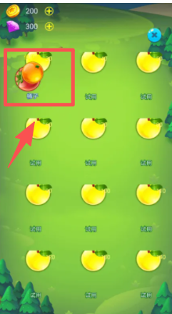 1、在水果选择界面,点击选中左上角的桃子类水果。
