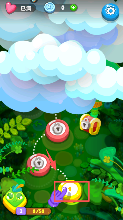 2、在关卡选择界面,点击标有 “1” 的圆形按钮,进入第 1 关。