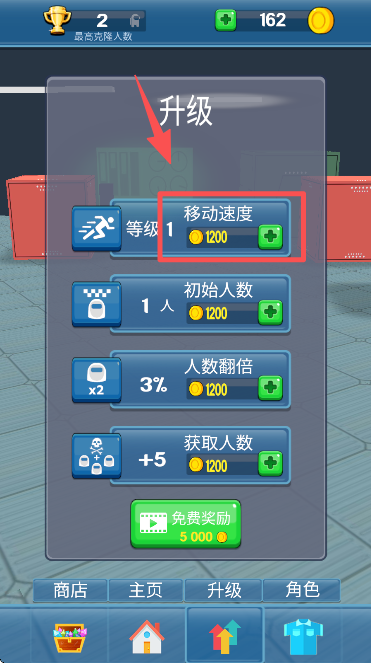 2、在升级界面点击 “移动速度” 选项,消耗资源升级该属性。