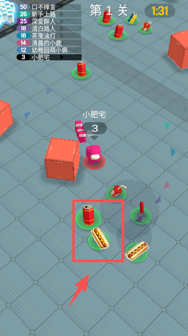 3、操控角色移动到食物处,吃掉热狗等食物增加克隆人数。