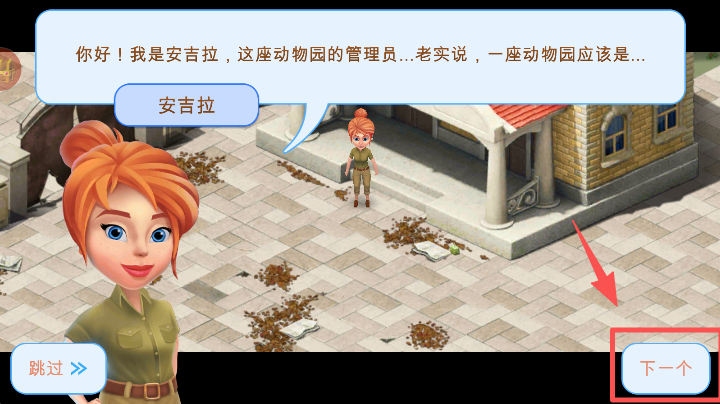 1、点击界面右下角的 “下一个” 按钮,查看管理员安吉拉的后续指引内容。