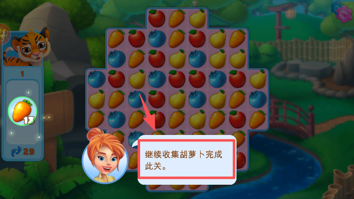 4、持续通过匹配操作收集胡萝卜,直到完成本关要求的收集数量即可通关。