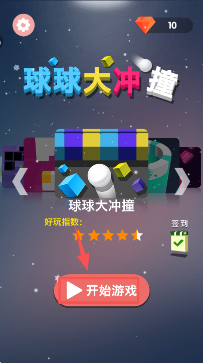 2、在球球大冲撞主界面,点击粉色的 “开始游戏” 按钮,进入游戏的关卡准备页面。