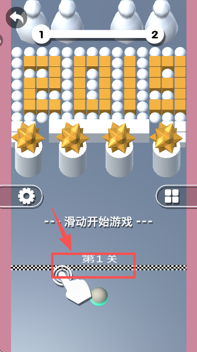 3、在第 1 关的准备界面,滑动 “滑动开始游戏” 区域,开启本关的球球冲撞挑战。
