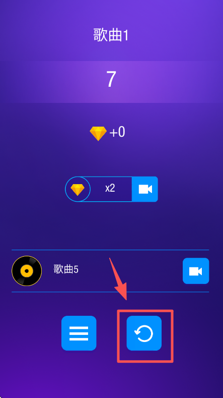 4、关卡结束后,点击界面中的刷新图标,重新开启本轮的锥形平台跳跃游戏挑战。