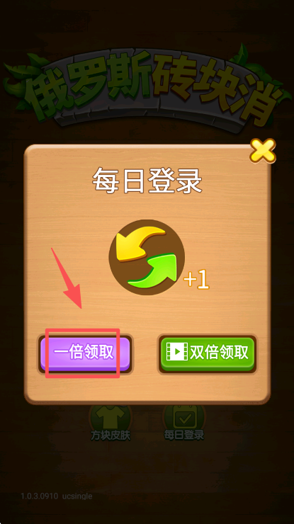 1、在每日登录弹窗中,点击 “一倍领取” 按钮,就能获取当日的登录奖励道具。