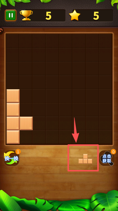 4、持续选择合适的砖块样式,放置到网格中,完成砖块的消除或堆叠来积累分数。