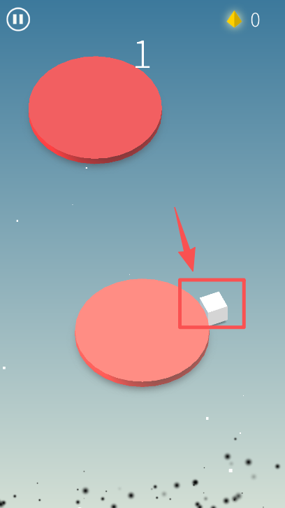 2、进入关卡后,操控白色方块在红色圆形平台上跳跃,依次通过不同平台推进游戏。