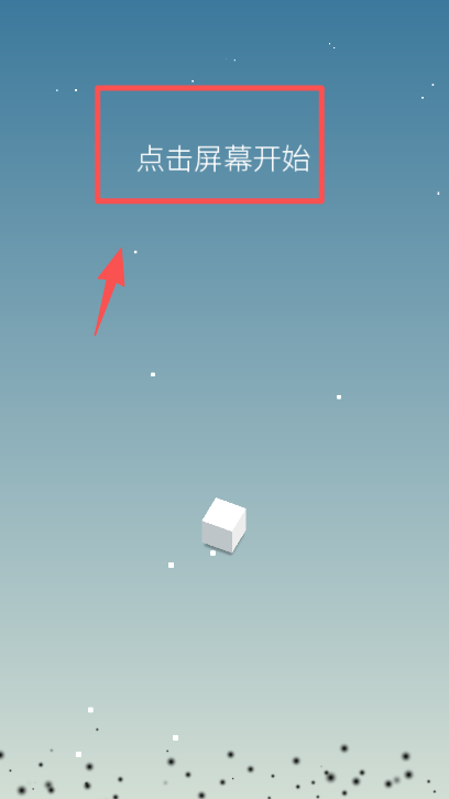 1、在游戏启动界面,点击 “点击屏幕开始” 的区域,即可进入方块的跳跃关卡。
