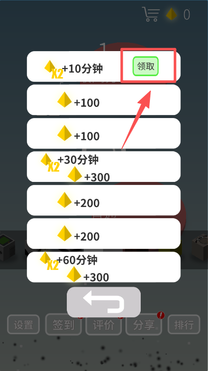 4、打开奖励界面后,点击 “领取” 按钮,就能获取对应的游戏奖励道具。