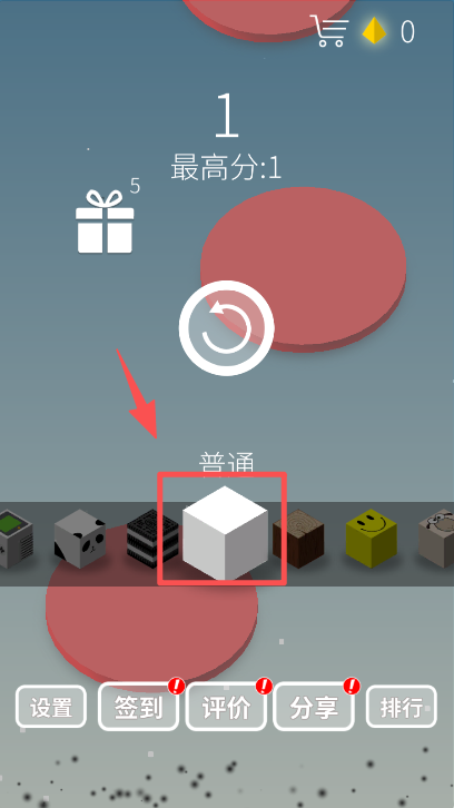 3、游戏结束后,在结算界面选择 “普通” 样式的方块,可重新开始游戏继续挑战。
