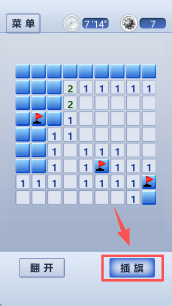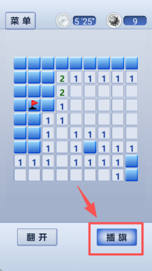1、在排雷游戏界面,点击下方的 “插旗” 按钮,切换到插旗状态,可标记疑似藏雷的方块。