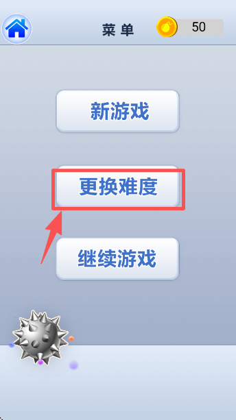 3、进入菜单界面后,点击 “更换难度” 按钮,即可进入难度选择界面调整游戏的难度设置。