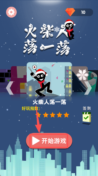 2、领取奖励后,在游戏主界面点击红色的 “开始游戏” 按钮,进入游戏的关卡选择环节。