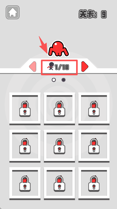 3、在关卡选择界面,找到显示 “1/18” 的火柴人关卡,点击进入对应的第 9 关游戏。