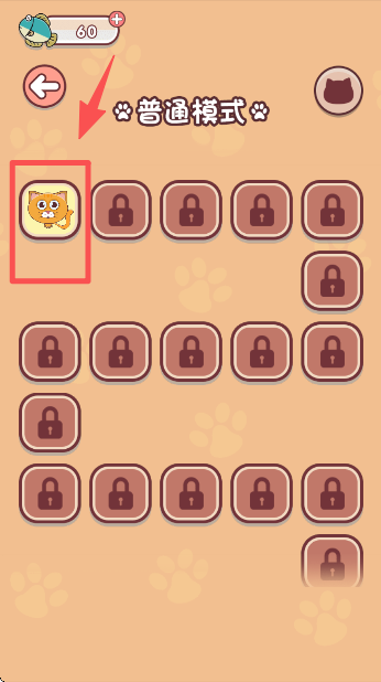 3、在普通模式的关卡列表中,点击已解锁的第一关,进入该关卡的游戏界面。