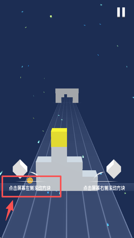 3、进入游戏后,通过点击屏幕左侧或右侧,控制方块向对应方向滚动前进。