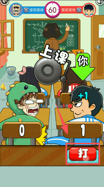 2、进入上课场景后,点击 “打” 按钮,对同桌角色发起互动操作。