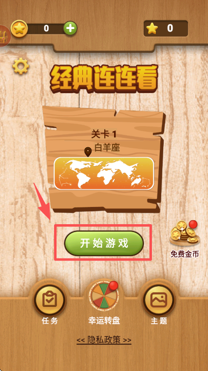 1、在游戏主界面找到 “开始游戏” 按钮并点击,即可进入关卡 1 白羊座的连连看游戏。
