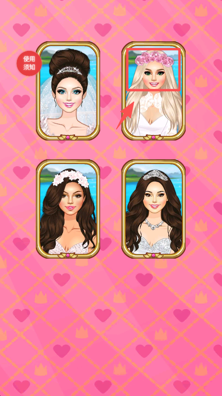1、在角色选择界面,点击带有粉色花环装饰的新娘形象,选定该角色进入装扮环节。