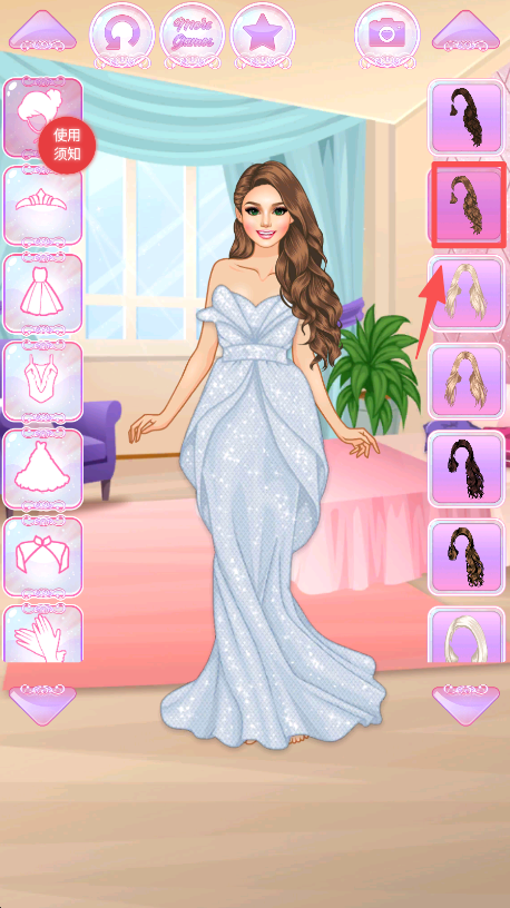 1、核心换装操作:进入游戏后,从衣橱中选择心仪的服装,通过拖拽为公主穿上,并可微调服饰位置,直至达到满意效果。
